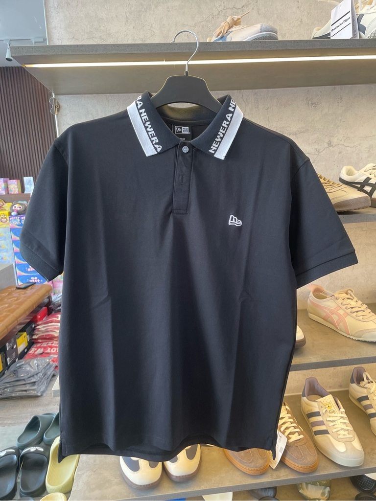 áo new era polo đen cổ viền trắng
